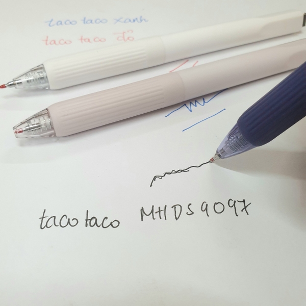 Thiết kế tiện dụng: Bút gel bấm Tacotaco 9097 với cơ chế bấm linh hoạt, thân bút thon gọn dễ cầm nắm, phù hợp cho học sinh, sinh viên và dân văn phòng.