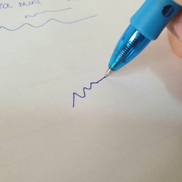 Mực gel màu xanh đậm, đều màu, khô nhanh, không thấm qua giấy – đảm bảo trang vở luôn sạch đẹp.