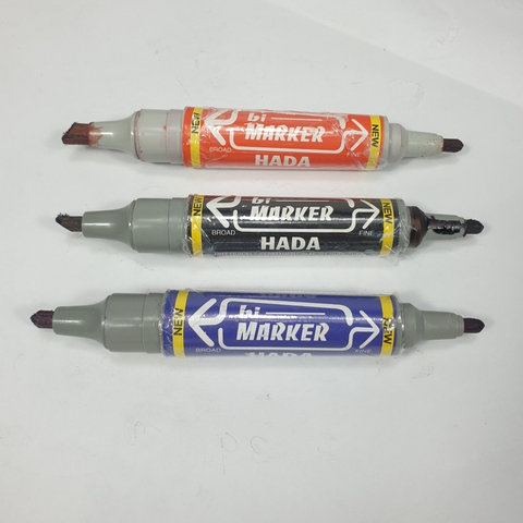 🔖 Bút lông dầu 2 đầu nét to 6.0mm và nhỏ 0.8mm, HADA (Xanh, Đỏ, Đen)