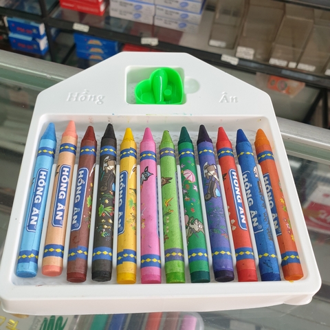 📚 Bút chì màu sáp 12 Màu, Hồng Ân (nhà) (1 hộp)