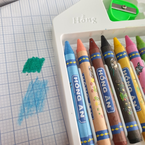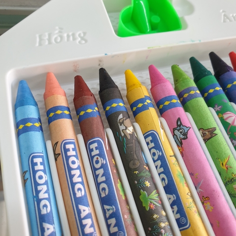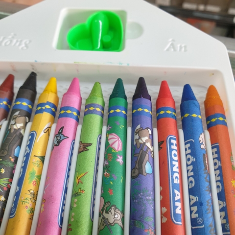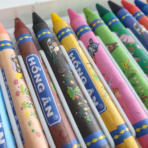 1. Bút sáp màu Hồng Ân 12 màu được làm từ sáp được tinh lọc chất liệu không gây độc hại cho người sử dụng.