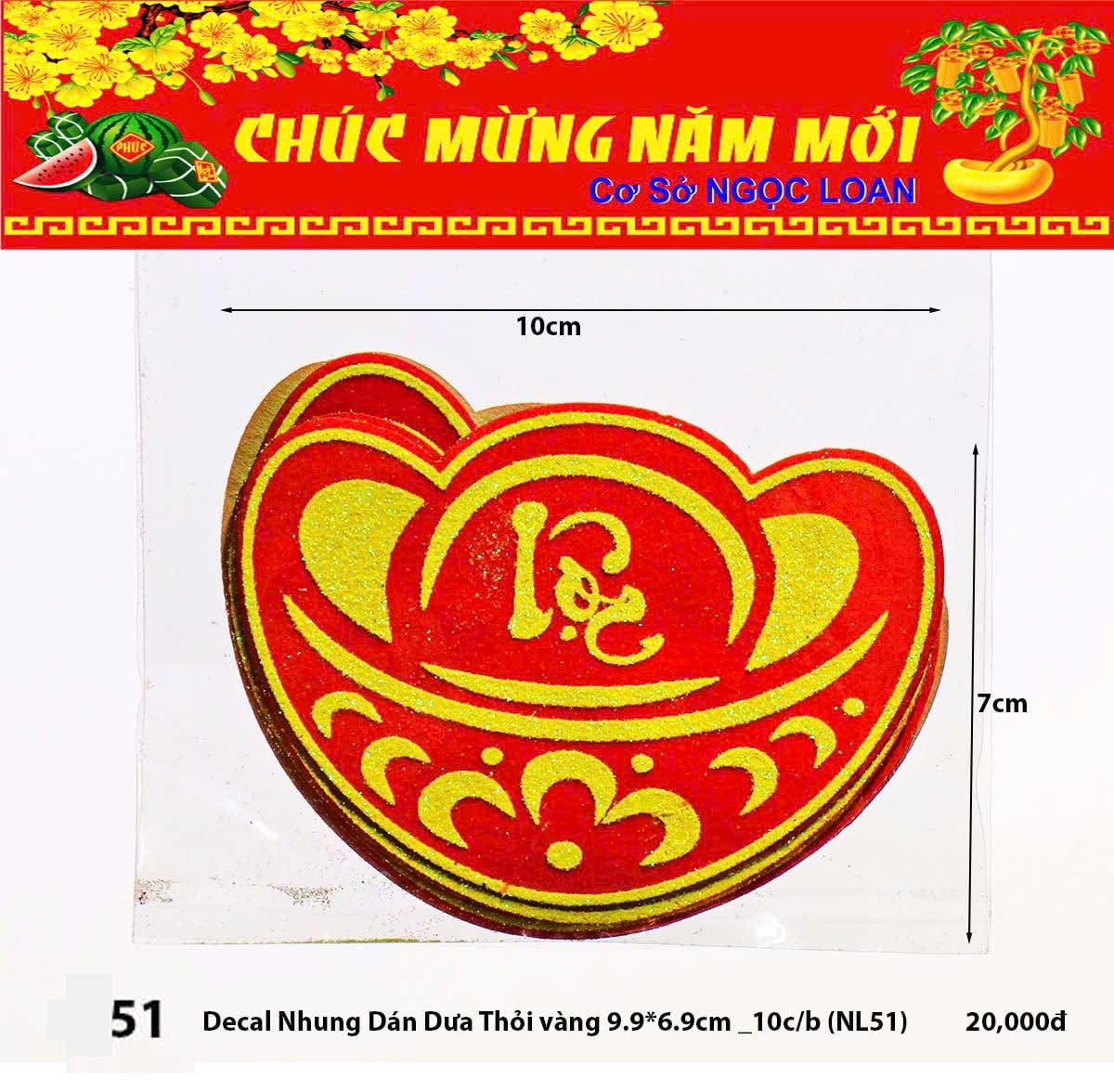 🎋🧧 Decal Nhung Dán Dưa Thỏi vàng 9.9*6.9cm _10c/b (NL51) (2551051) (HÀNG MỚI 2025)
