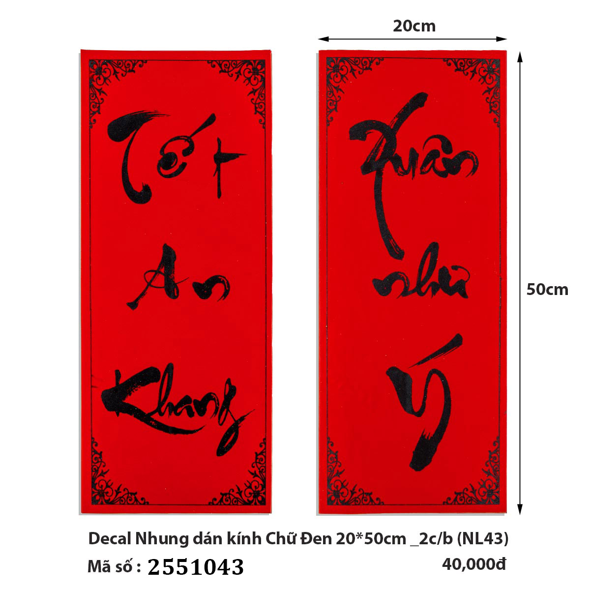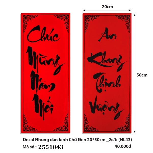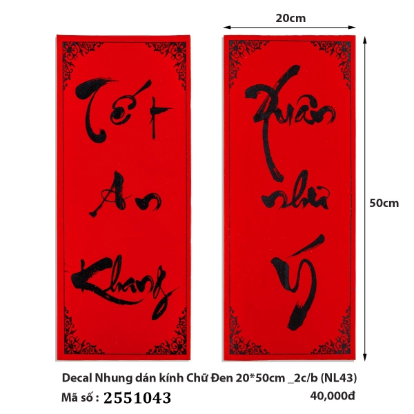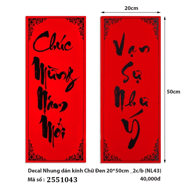 🎋🧧 Decal Nhung dán kính Chữ Đen 20*50cm _2c/b (NL43) (2551043) (HÀNG MỚI 2025)