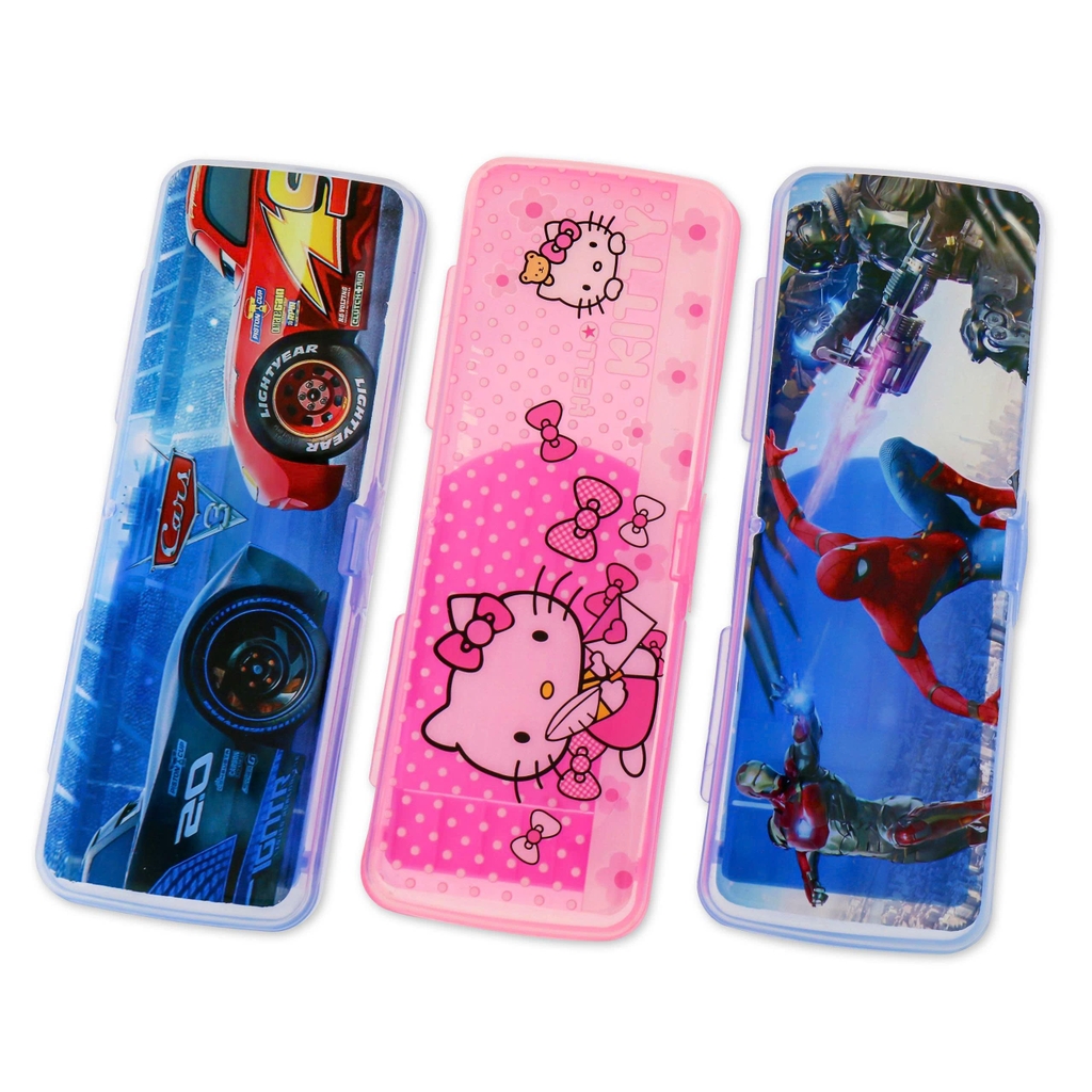1. Hộp bút nhựa trong FY-0233. Mẫu đa dạng cho bé trai, bé gái: Xe hơi, siêu nhân, avengers, spiderman, mèo kitty, công chúa bạch tuyết, công chúa elsa...
