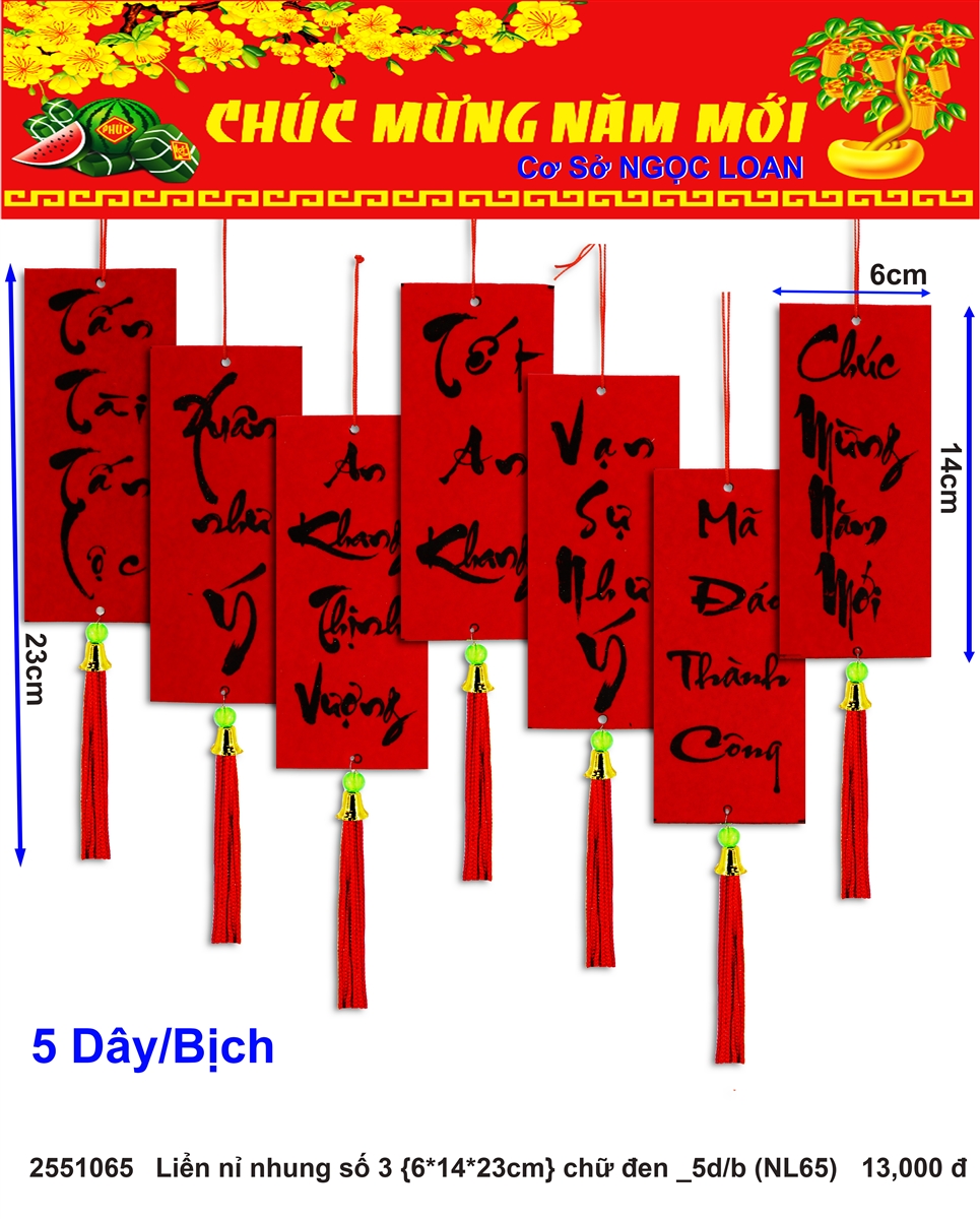Liển nỉ nhung số 3 {6*14*23cm} chữ đen _5d/b (NL65) (2551065) (HÀNG MỚI 2025)