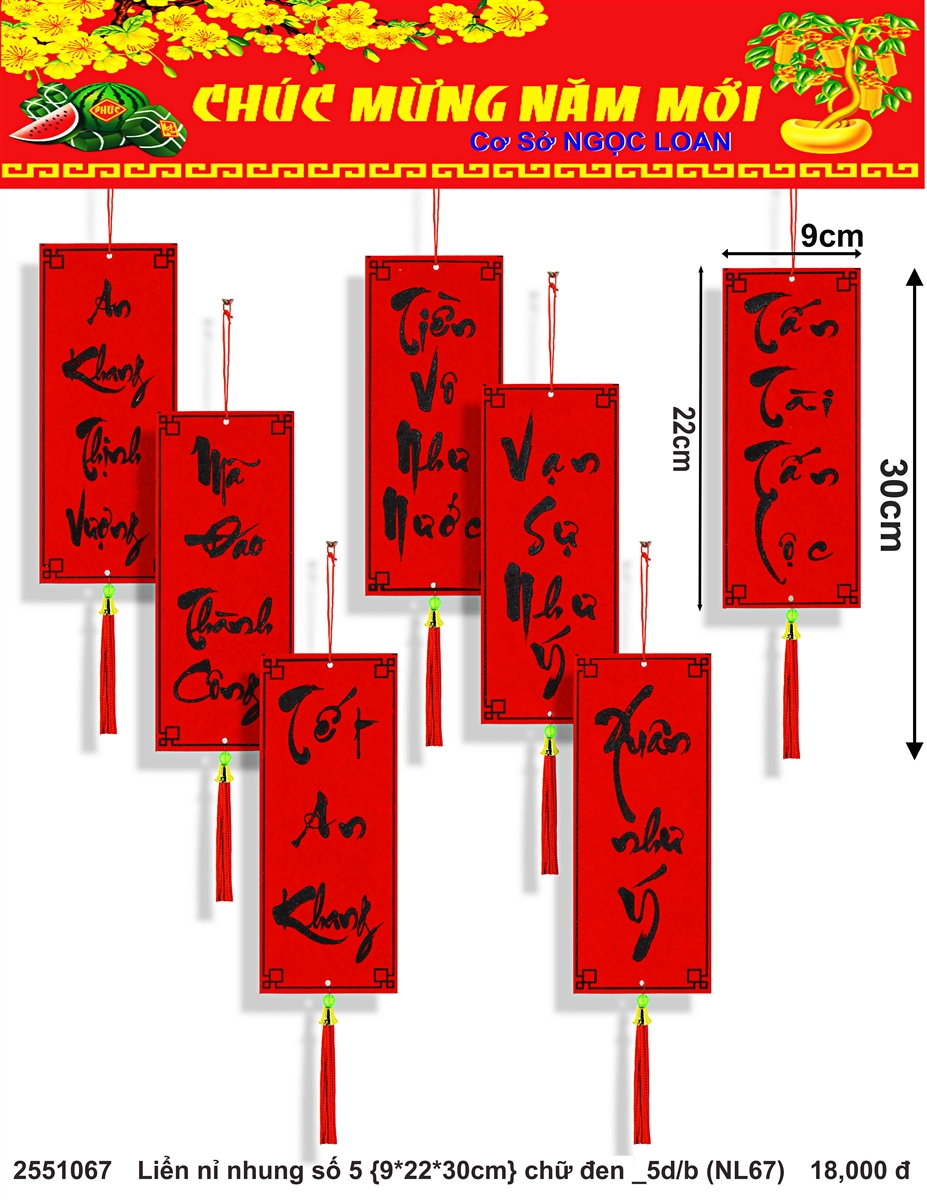 Liển nỉ nhung số 5 {9*22*30cm} chữ đen _5d/b (NL67) (2551067) (HÀNG MỚI 2025)