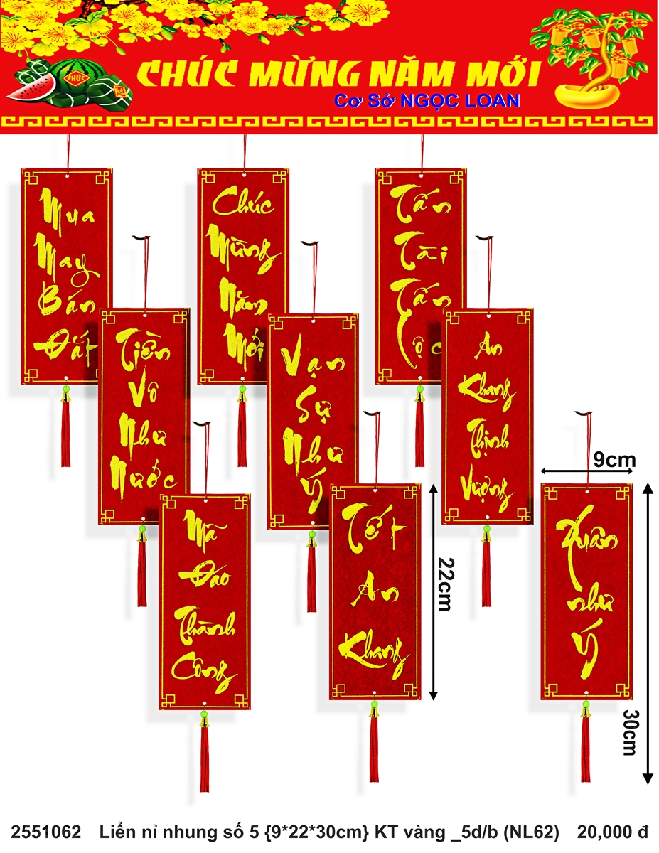 Liển nỉ nhung số 5 {9*22*30cm} KT vàng _5d/b (NL62) (2551062) (HÀNG MỚI 2025)