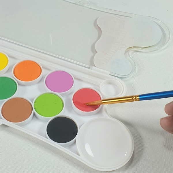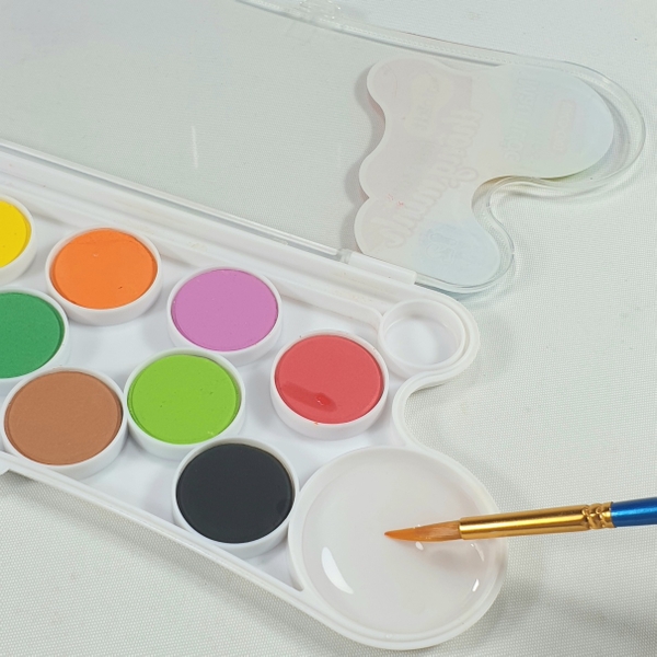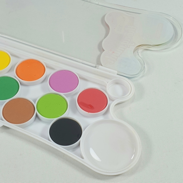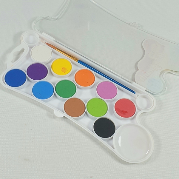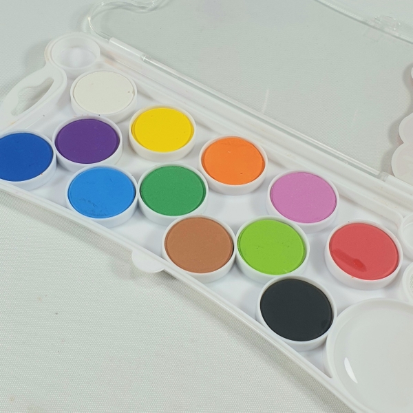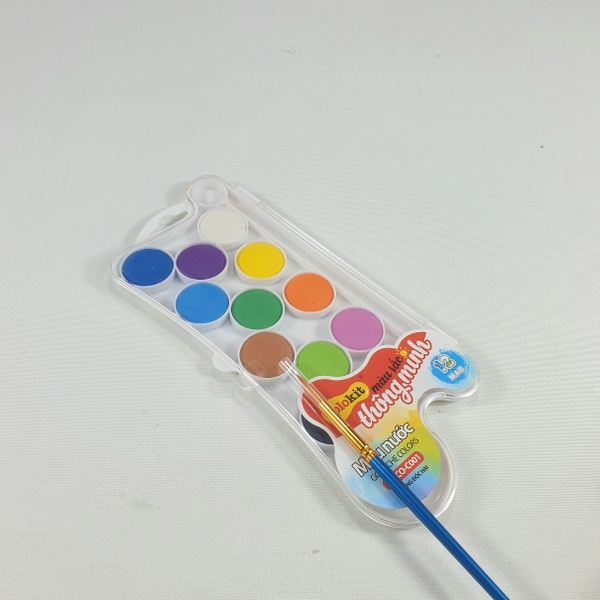 1. 12 màu/vỉ, kèm thanh lấy màu, hộp màu có nắp đậy