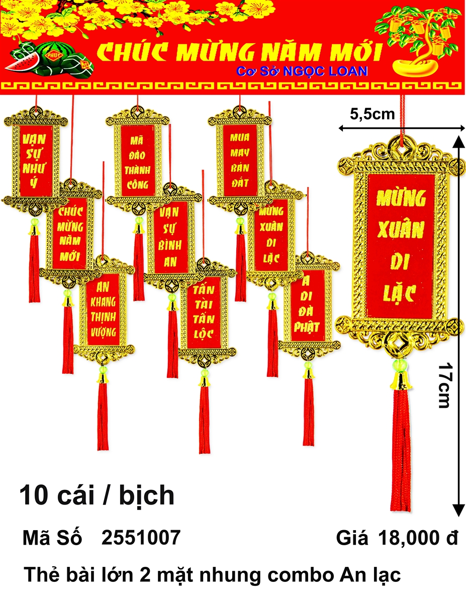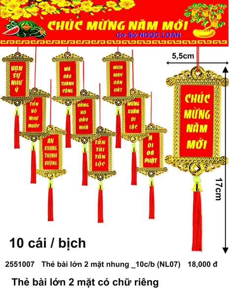 🎋🧧 Thẻ bài lớn 2 mặt nhung _10c/b (NL07) (2251007) (HÀNG MỚI 2025)