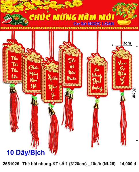 Thẻ bài nhung-KT số 1 {3*20cm} _10c/b (NL26) (2251026) (HÀNG MỚI 2025)