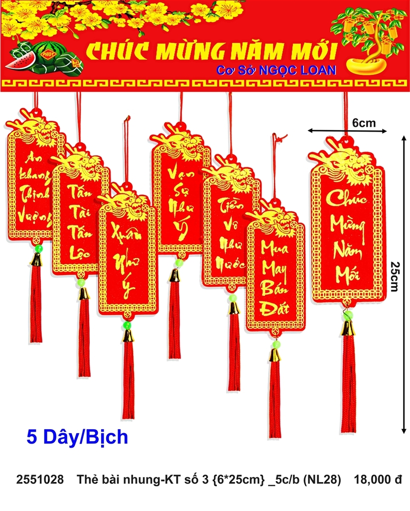 Thẻ bài nhung-KT số 3 {6*25cm} _5c/b (NL28) (2251028) (HÀNG MỚI 2025)