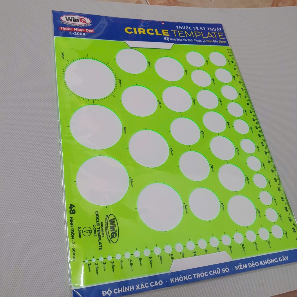Thước kẻ hình tròn dẻo Win C-2004 là dụng cụ vẽ kỹ thuật chuyên dụng, tích hợp nhiều hình tròn với kích thước khác nhau trên cùng một thước. Sản phẩm làm từ nhựa dẻo, có khả năng uốn cong nhẹ, hạn chế gãy khi sử dụng.
