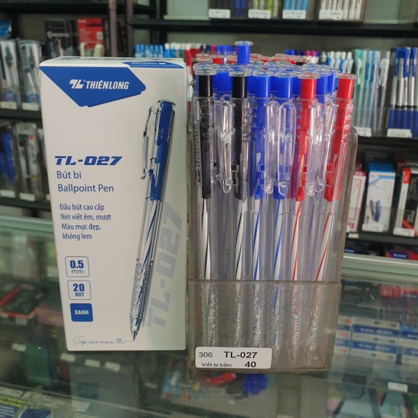 🔖 Bút bi bấm Thiên Long TL-027 (Xanh, Đỏ, Đen), nét bút 0.5mm.